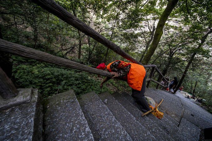 欣赏完三叠泉的壮观美景,留影拍照完毕。还要从下来的台阶攀爬回去,虽然累些但是感觉很值得。
