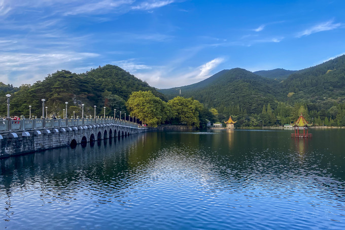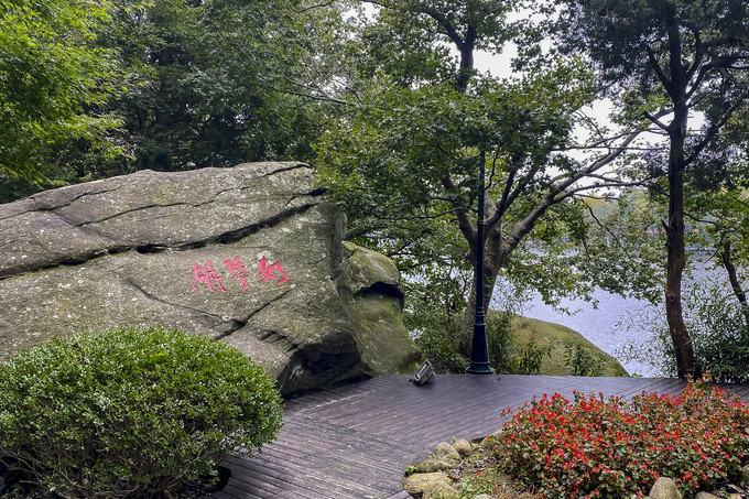 山得水润则峥嵘秀逸,水依山岩则妩媚柔美。如琴湖浩浩荡荡又不失秀丽雅致。因湖岸曲线玲珑,湖面酷似一把媚人的小提琴,加之湖边的石上有古人刻的“如琴”二字,故得名。湖半边近靠花径园内,又叫花径湖。有曲桥通往湖心岛,园中繁花似锦,曲径通幽,湖光山色,风景如画。