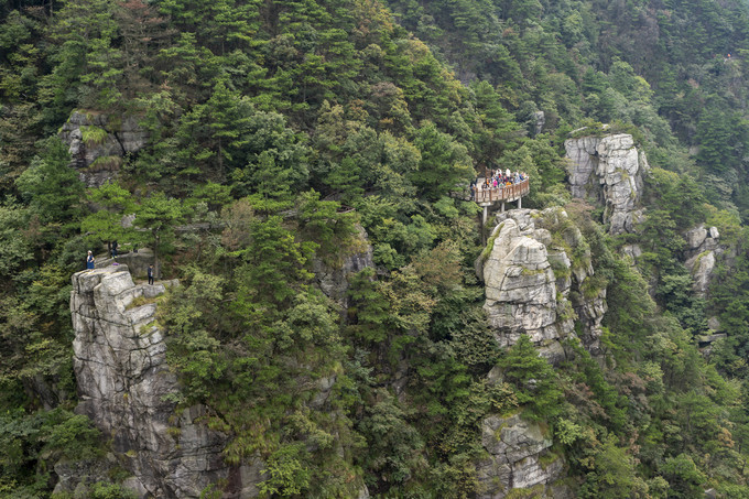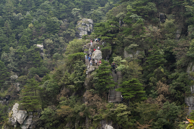 行程的第二站来到五老峰,这里因山的绝顶被垭口所断,分成并列的五个山峰,仰望俨若席地而坐的五位老翁,故人们便把这原出一山的五个山峰统称为“五老峰”。它根连鄱阳湖,峰尖触天,海拔1436米,虽高度略低于大汉阳峰,但其雄奇却有过之而无不及,为全山形势最雄伟奇险之胜景。