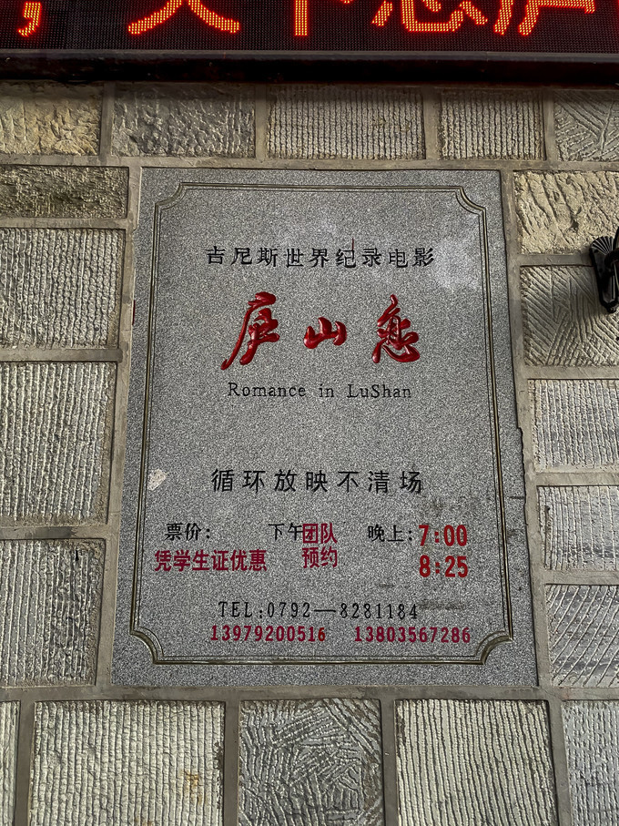 我们第一天行程最后一个景点,停留在了庐山最有名的电影院。庐山恋电影院,每天从早到晚只放映《庐山恋》一部影片。游庐山,看《庐山恋》,已成为庐山的一个固定旅游项目。