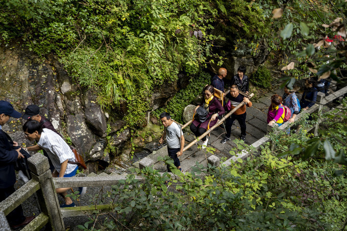 庐山三叠泉编辑缆车站的终点就是三叠泉的上游区域。三叠泉位于五老峰下部九叠谷,总面积16.5平方公里,山峰高峻,峡谷幽深,欣赏三叠泉要上下三千台阶,对自己体力是个考验。身体虚弱的游客可以出一些费用,坐挑杆让当地人抬上来。