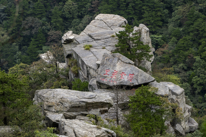 我们来到仙人洞的时候,是趟着满山的云雾,踩着不规范的石级,怀着满心的神秘上来的。在仙人洞外看到有一岩石形如蟾蜍,伸展于陡壁上,石隙上生一古松,俗称石松。1961年,毛主席游此,题诗云:“暮色苍茫看劲松,乱云飞渡仍从容。天生一个仙人洞,无限风光在险峰。”