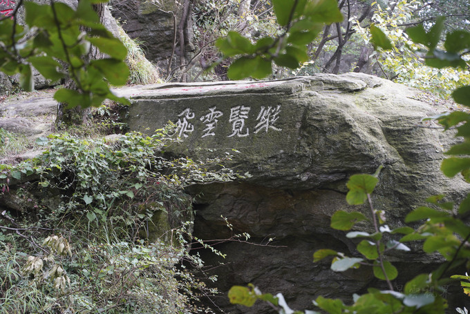 仙人洞入口处有一石松。石松凌空展开两条绿臂,作拥抱态。其枝枝叶叶,密密层层,蓊蓊郁郁,生机盎然:其根须裸露,却能迎风挺立,千百年不倒,充分显示了庐山松特有的坚强不屈的性格,堪称庐山匡山一奇景。松下石面镌刻有“纵览云飞”四个大字,传为清末民初诗人陈三立所书。