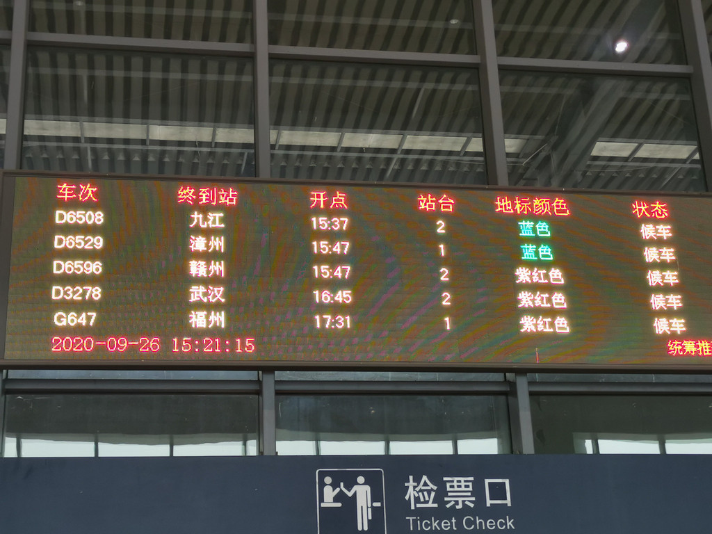 从尤溪出发,每天只有一班动车去九江,下午15点37分去,早上8点01分回,所以一日游被整成了三日游,第一天下午出发,第三天早上回来。网上购票时还看到一个庐山动车站,百度了解后才知道庐山站离景点比较远,车次少,不适合去庐山的游客,不适合为什么还叫庐山站呢,嗯,这其中我隐约看见了刀光剑影。2020年9月26日,天气多云,带上老婆大人,出发。。。