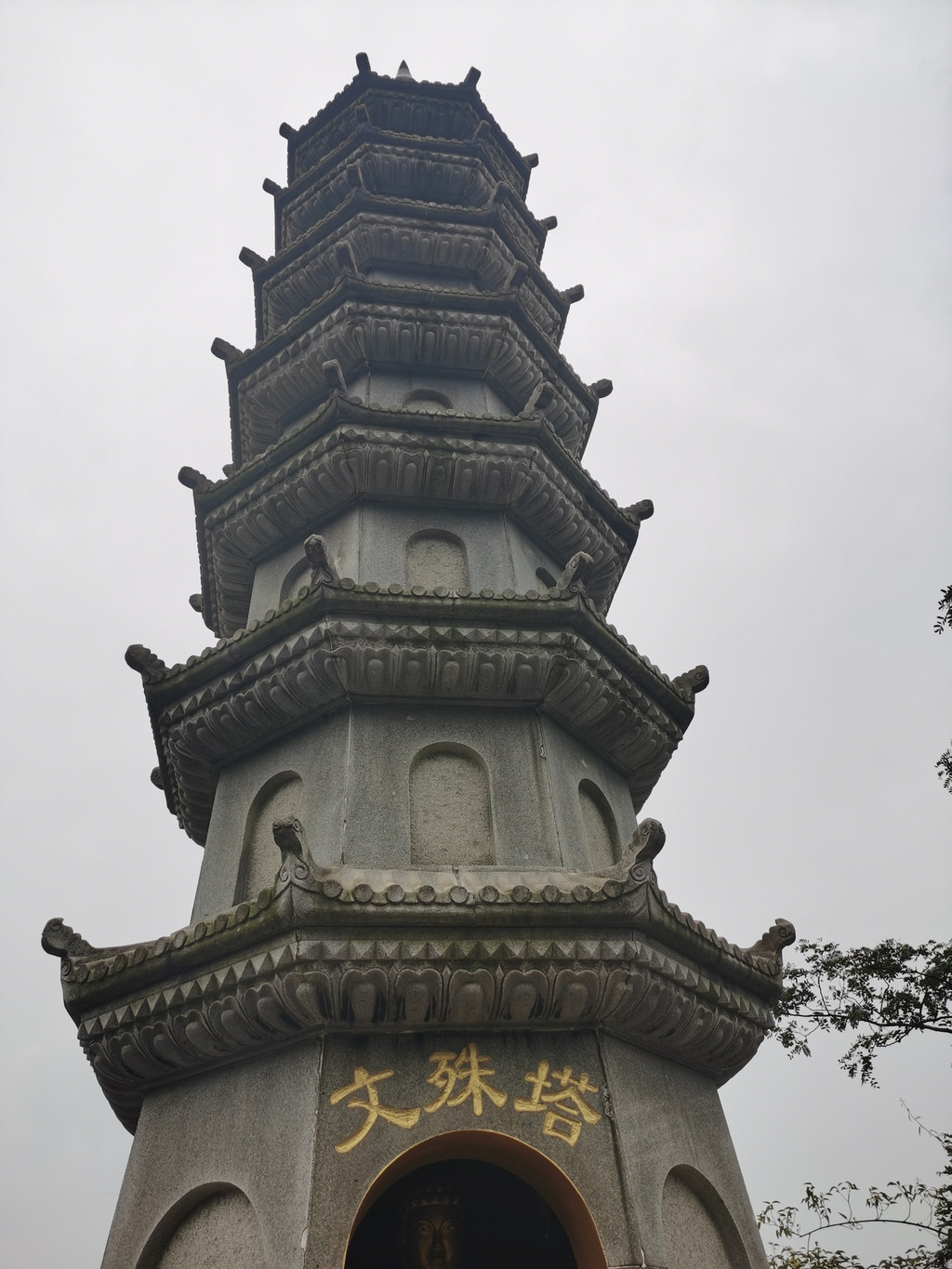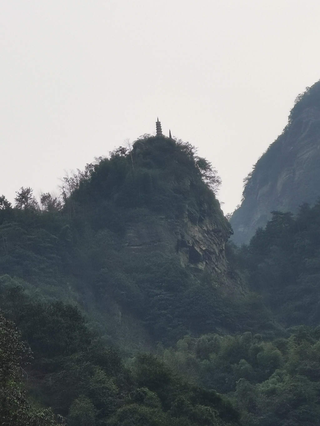 文殊峰顶的文殊塔,很小的一座迷你塔。上文殊峰有缆车,在缆车上可以更好的观看瀑布全景,个人建议可以缆车上步行下,我们是全程步行,快到山顶时还下起了微雨,下山途中雨也一直断断续续下不停,