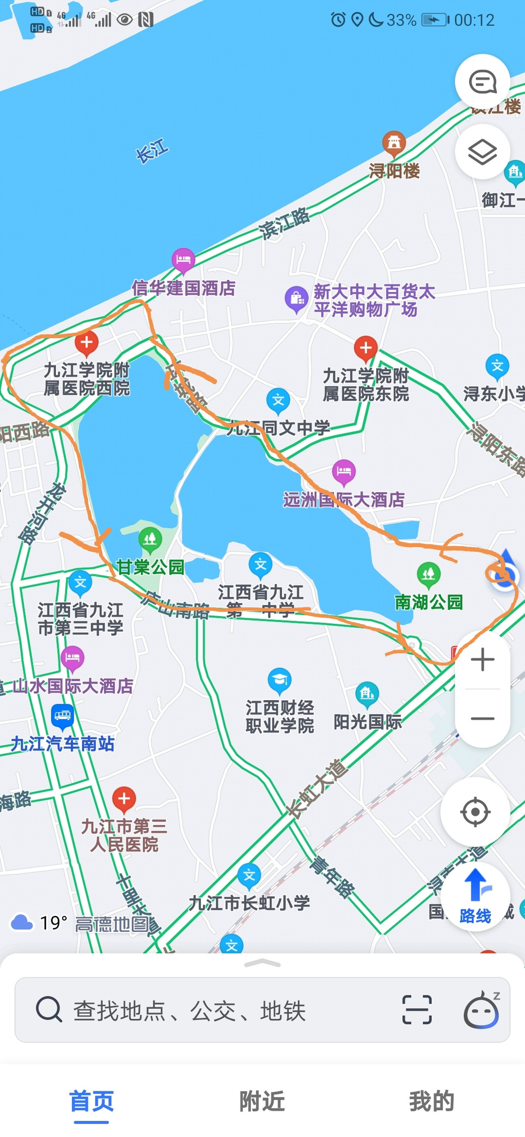 住的地方叫花筑隐世小院,名字取的真好看,我一眼就看上了,好评不错,携程上订的,总体来说还行,类似民宿,步行10分钟到动车站,两个晚上210元,不贵。提供身份证和健康码办完入住手续,此时天微雨,但是微雨肯定挡不住我们的行程。路上老婆说等以后有钱了,出来旅游一定要住五星级宾馆,我很爽快的答应了,哈哈。附近一家油炸食堂搞定我们的晚餐,平时几乎是不吃这些垃圾食品的,出来旅游就要从身心到嘴巴一起放纵一下。今晚的目标是绕湖走一圈,顺便长江边上游一游,远眺江对岸的湖北省。
