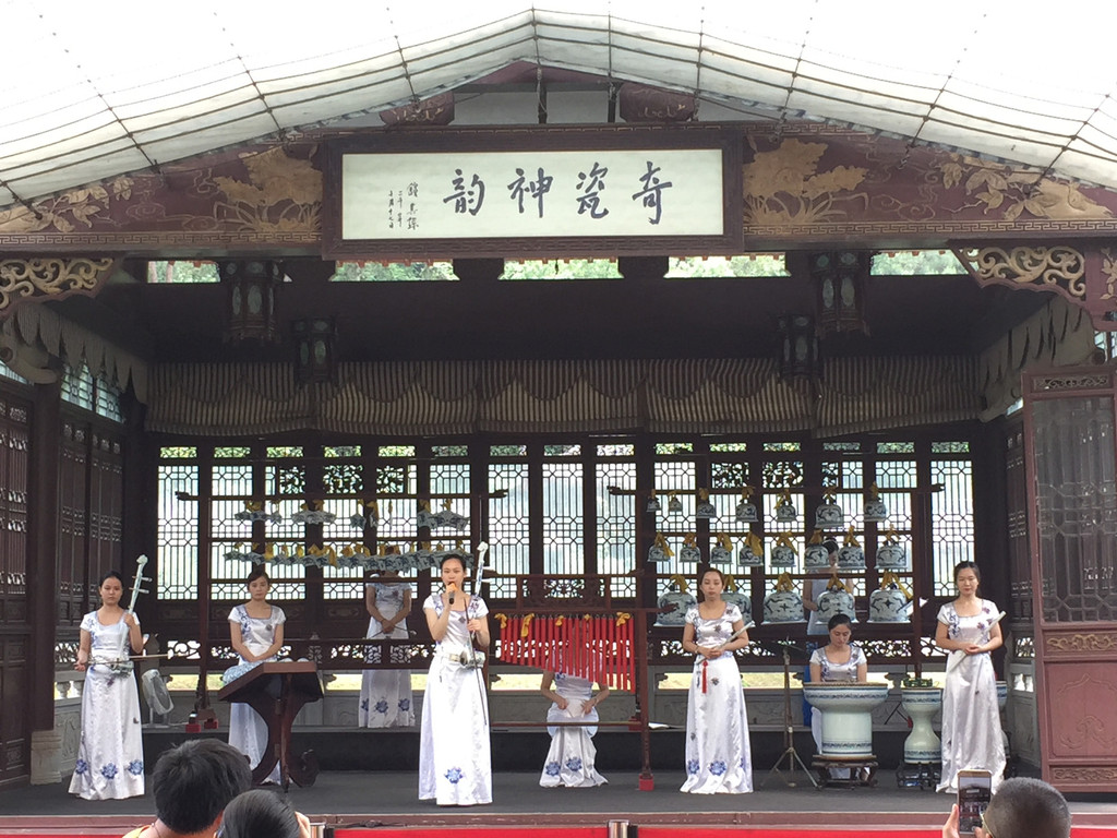 但景德镇的【古窑民俗博览区】是盘子爱好者的爸妈此行另一个期待的景点。因为取消了瑶里古镇的行程,省出来大把的时间,我们在这个满眼瓷器的景区里足足逛了大半天,尤其是水榭的表演很好看,美丽的小姐姐们穿着青花瓷风格的衣衫,拉着陶瓷制成的二胡等乐器。景区里到处都是精美的瓷器,瓷器的历史源远,看过这么多的瓷器,会惊叹我国国代的制瓷技术有多先进,会明白为何瓷器和国名是一个单词,我偷偷告诉你,就连这个景区里的公共洗手间,都好好看。