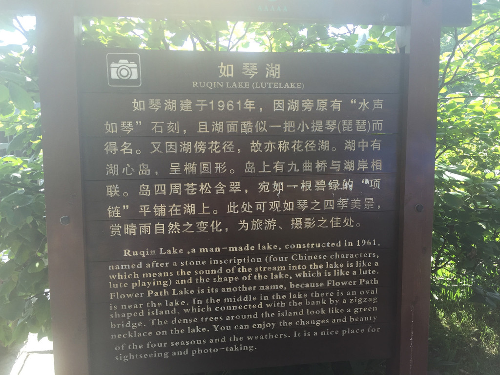 比起第二天,第三天的行程就很舒服了。睡到自然醒,吃过早餐从所住酒店边上的如琴湖开始逛。【如琴湖】因湖面形状似小提琴得名,湖面不大,湖水澄清。早晨的如琴湖游人不多,独有一种安静的美感。这个景点如果时间紧凑可以不逛,因为好像每个城市的公园里都会有的那种湖,并不特别,但是空气比城市里好上一万倍,才感觉分外难得。【白居易草堂】、【白司马花径】在如琴湖的湖畔,这种景点只有我妈喜欢,我享受的,是和爸妈一起逛园子的美好时光。