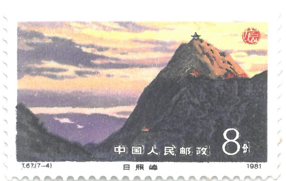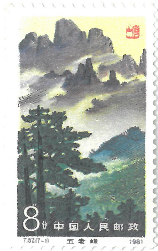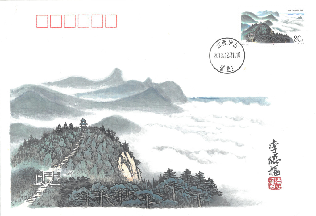 含鄱口和五老峰曾经两登国家名片,吴建坤老师设计的《庐山》邮票分别有“含鄱口”和“五老峰”。而李德福设计的《庐山和金刚山》中“庐山”画面为气势磅礴的含鄱口,背景为五老峰。估计这是从犁头尖取景的。