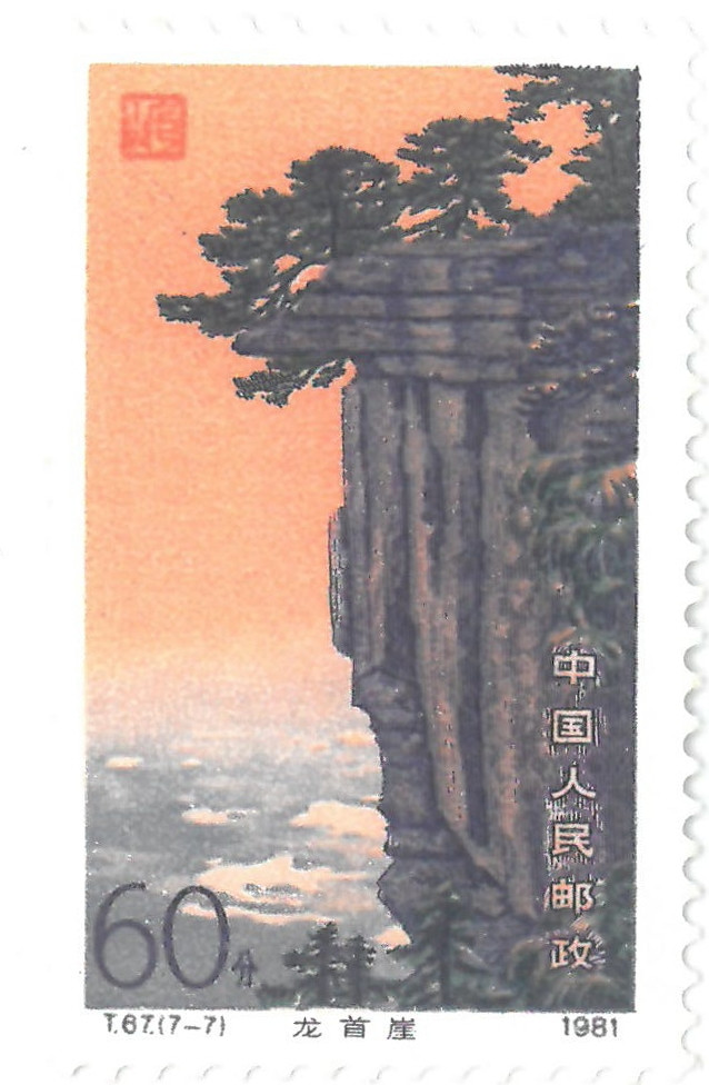 1981年邮电部发行的《庐山风景》特种邮票,在写信还是主要交流方式的年代,这套邮票除了在邮局出售外,甚至在小镇上的百货商店和新华书店都有出售。我也在这些精美的画面中神游庐山,在旅游尚不普及且风光邮票也很少的年代,五老峰、含鄱口、黄龙潭、日照峰、三叠泉、石松、龙首崖(图1)深深留在我的脑海。