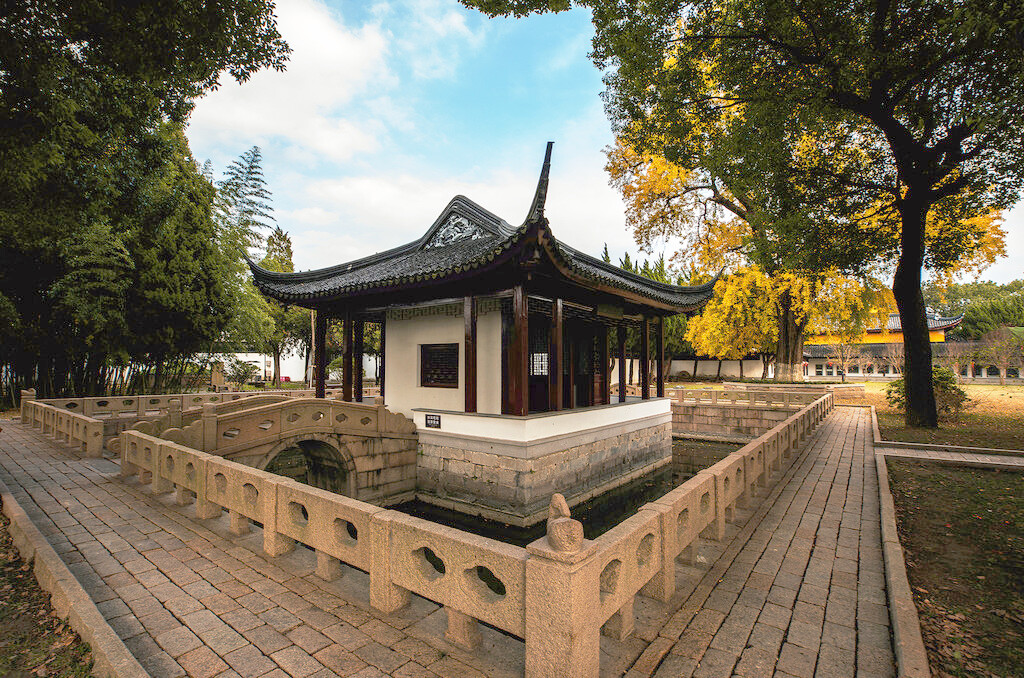 在保圣寺内西院,筑有陆龟蒙墓,墓前还保留了“斗鸭池”“清风亭”“垂虹桥”等历史遗迹,古韵悠悠。