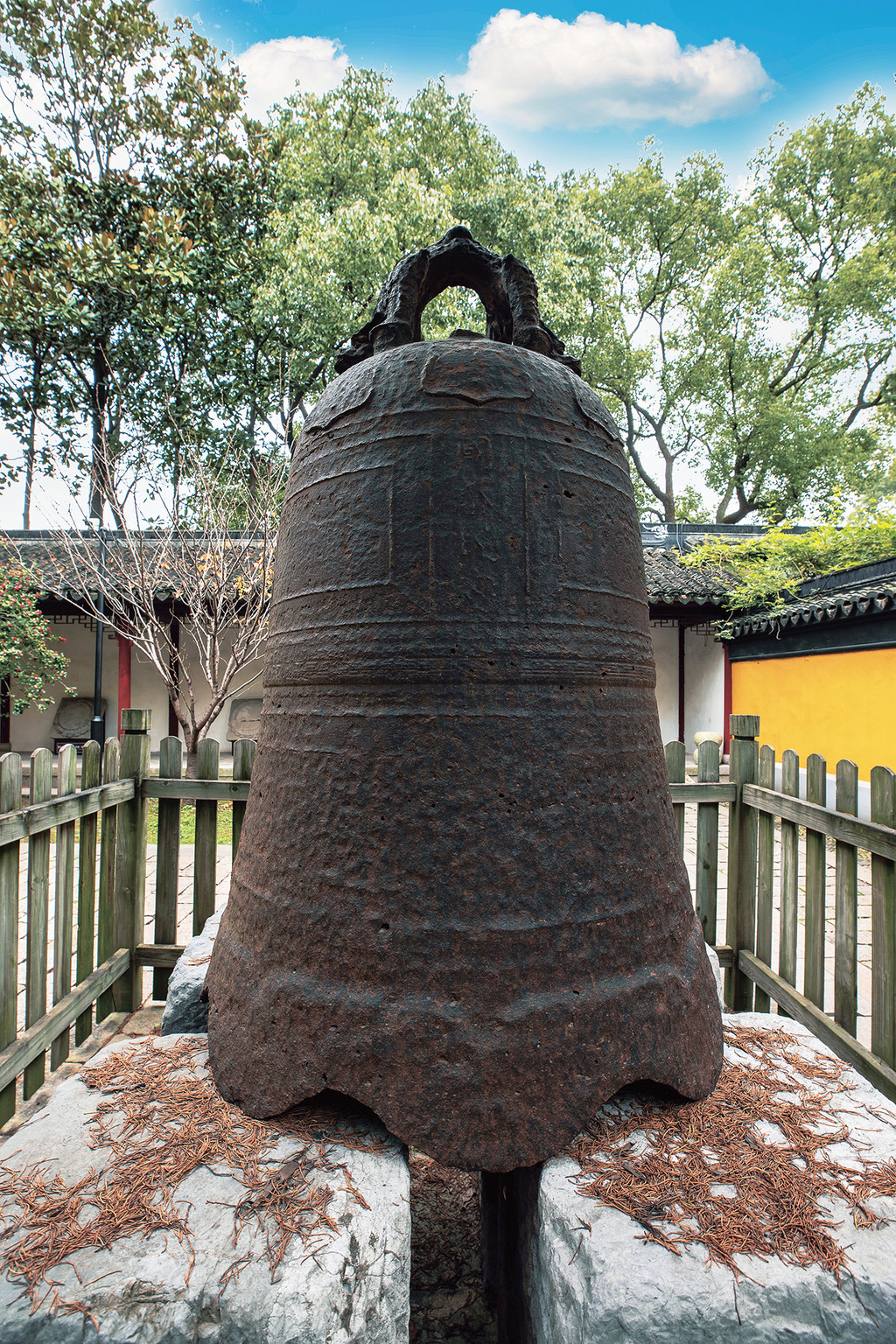 在古物馆庭院东侧,有一座高1.5米的双首四爪龙大铁钟。此钟为明末清初重铸,钟身上刻有“风调雨顺”“五谷丰登”等铭文。