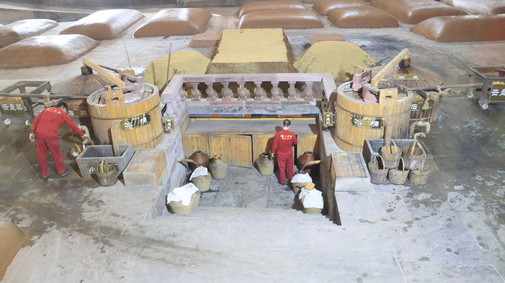整个景区弥漫着浓浓的酒香。酒史陈列馆内展示着泸酒文物,参观长廊展有纯手工酿制技艺生产现场。