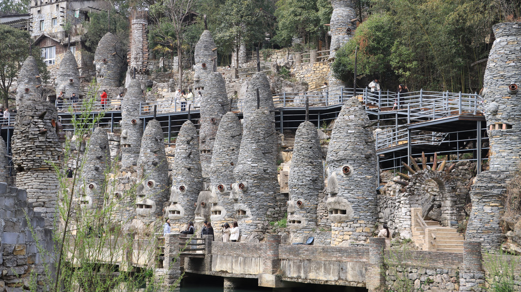 花溪夜郎谷是源于宋培伦老师小时候梦中的夜郎国形象,历时10余年打造的石头城。“夜郎自大”的典故家喻户晓,在两千多年前出现的夜郎古国,与古楼兰国齐名,一时盛世,名扬天下。一个夜郎谷,一个小男孩心中神秘的怪兽,以这样一种形式复活,似乎是一个现代人对古夜郎的全部想像。不知我们这里的“郎肠”会不会是古夜郎国的一部分。