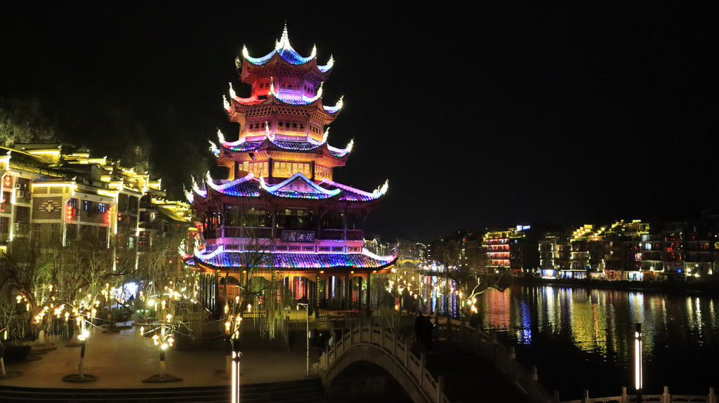 镇远县城被舞阳河一分为二,北岸是旧时士兵驻扎的地方,称之为卫城;南岸是行政机构和平民商家聚集的地方,称之为府城。古镇已有2300多年历史,古民居建筑特色突出,夜景如仙景般,很美很治愈。