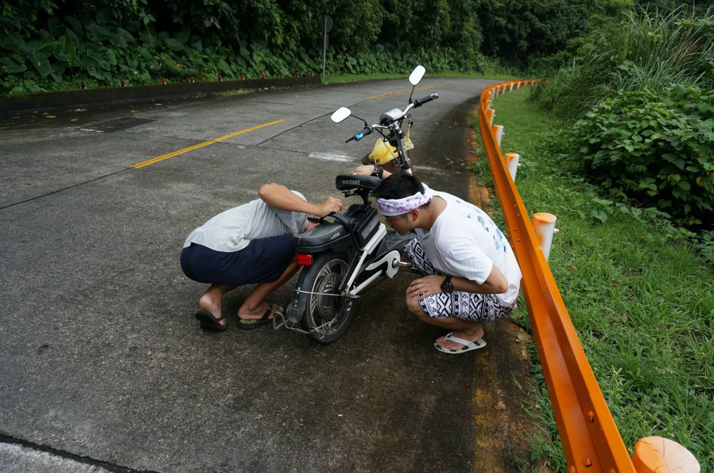 人家机车开的呼啦呼啦的。。。我们苦逼没有驾照只有骑个电动车在慢摇。。。上坡的时候还有很多人跟我们说加油!好尴尬。。。。
