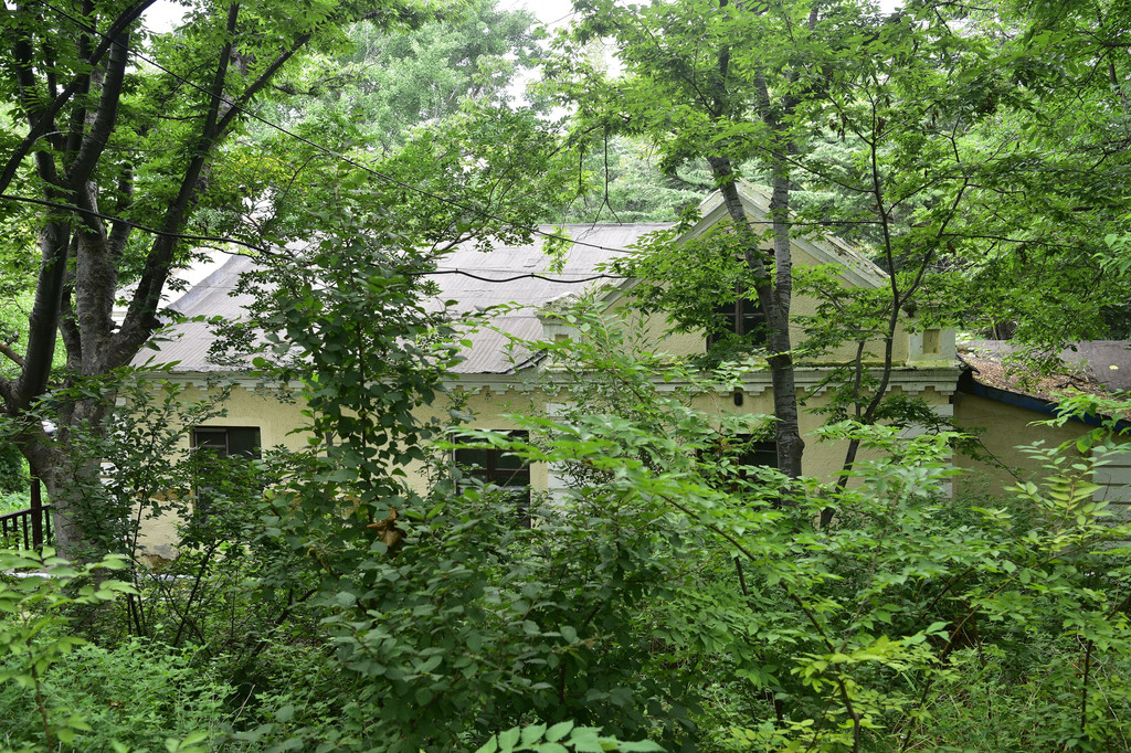 隔了一条小路,20多米的下边树林中一座西式黄色别墅是婉容楼,溥仪到了旅顺以后,川岛芳子费了好大功夫把婉容带来旅顺团聚,溥仪还是坚持要与皇后分居,看来任性的皇上很是让日本人为难了一下,好在大和旅馆黄金山分馆有现成的房子。