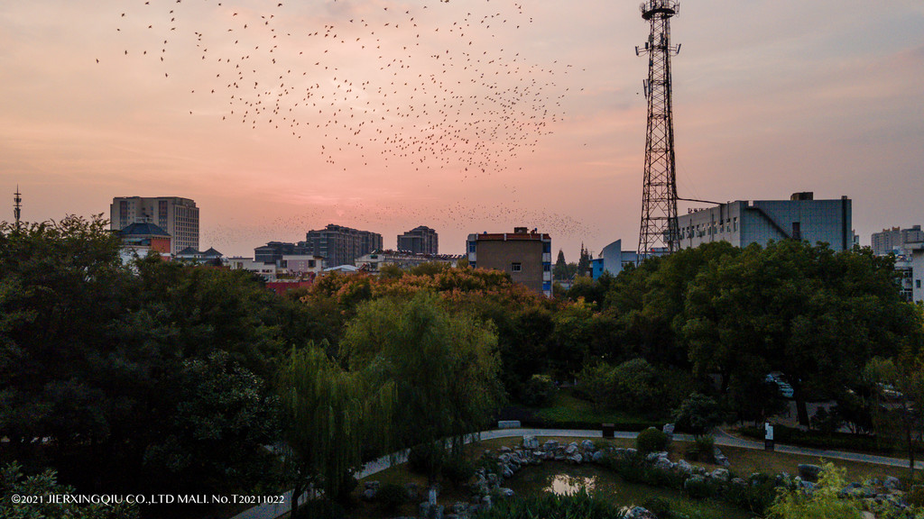 晚风轻佛,坐看满天彩霞,还有成群的鸟儿划过,美如画卷。