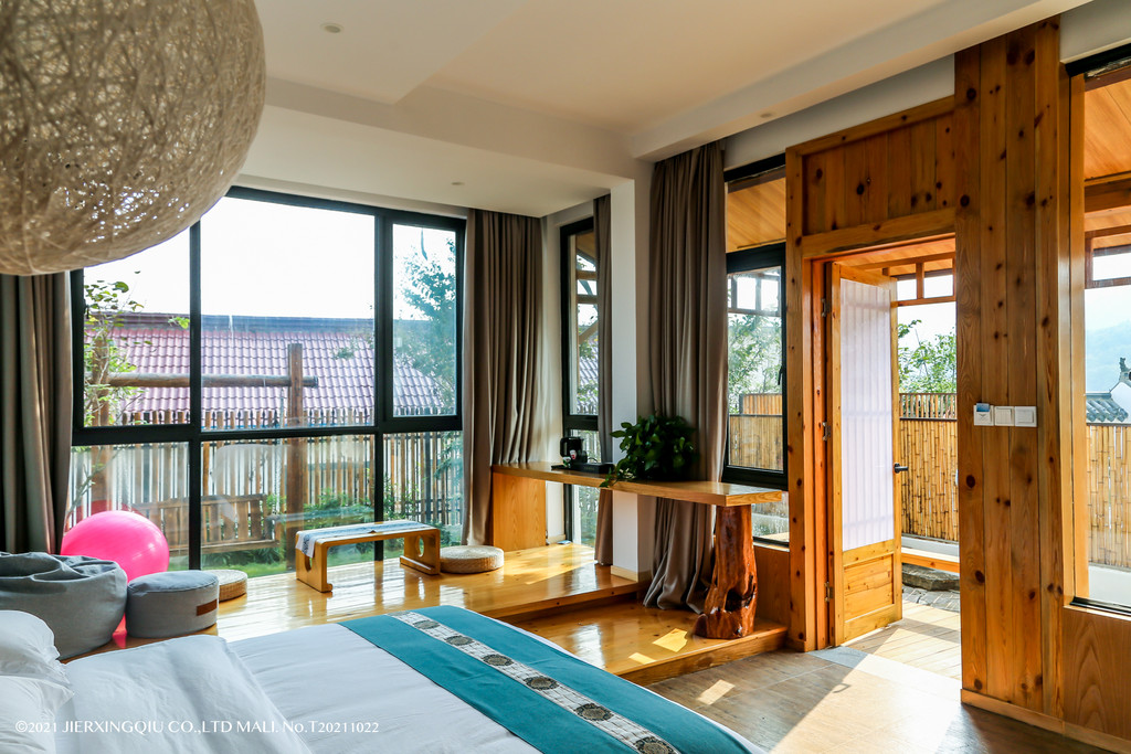 民宿的公共区域有明亮的清新的复合空间,搭配雅致的吧台区和阅读区,适合好友欢聚,置身于此,写意悠游。