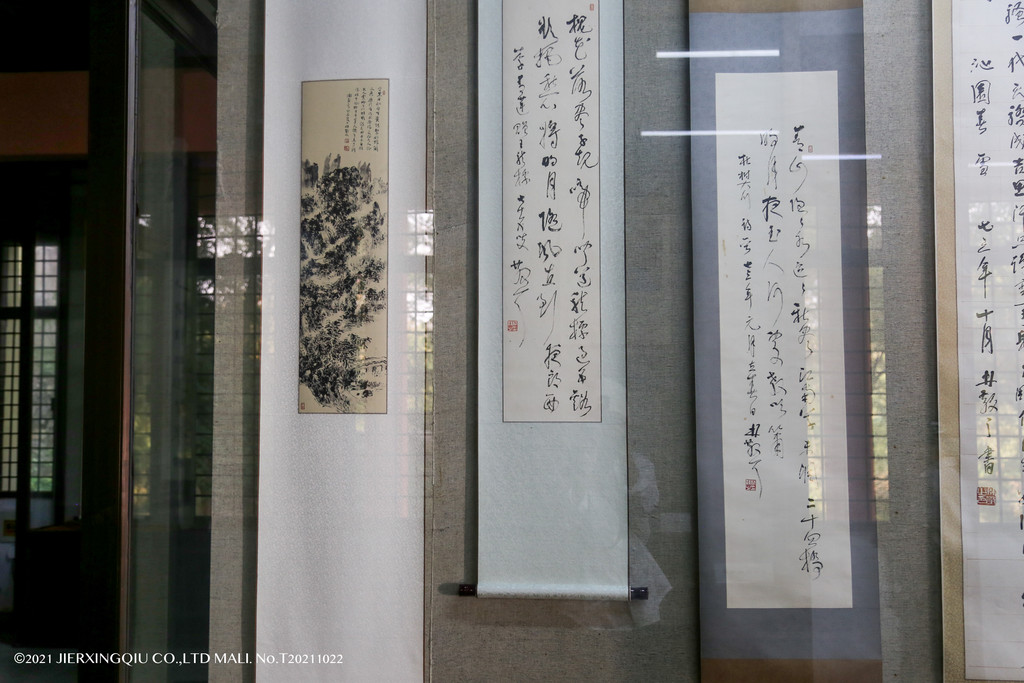 主馆名为“江上草堂”,内藏林散之各个时期的代表作一百余幅,大多为草书精品;林散之生前所作写生画稿及诗作手稿则保存于副馆内。