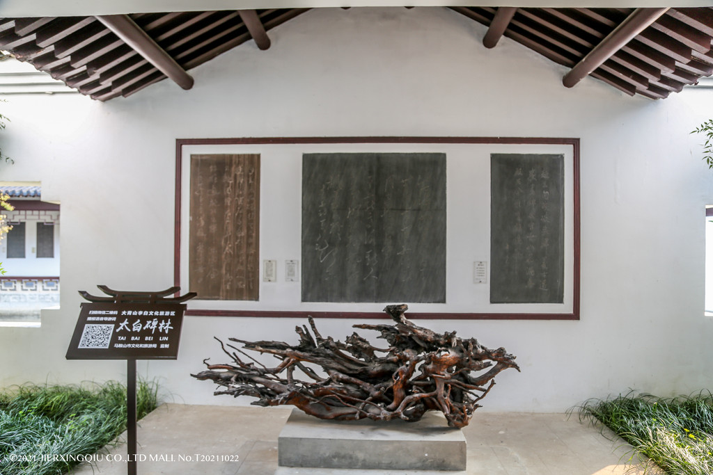 太白碑林内镶嵌着现代著名书法家书写李白各个时期的经典诗文108块,作者有鲁迅、郭沫若、于右任、沙孟海、林散之、楚图南、启功、陈立夫、沈鹏等,太白碑林将诗歌、书法、建筑艺术熔于一炉,是文化精品的代表作。