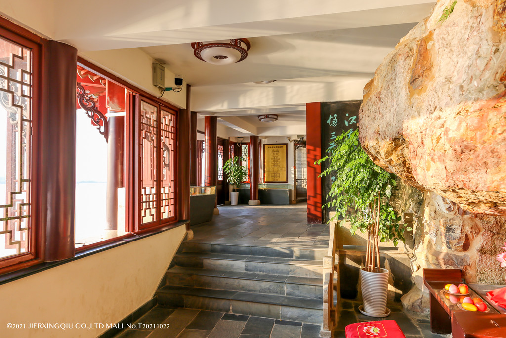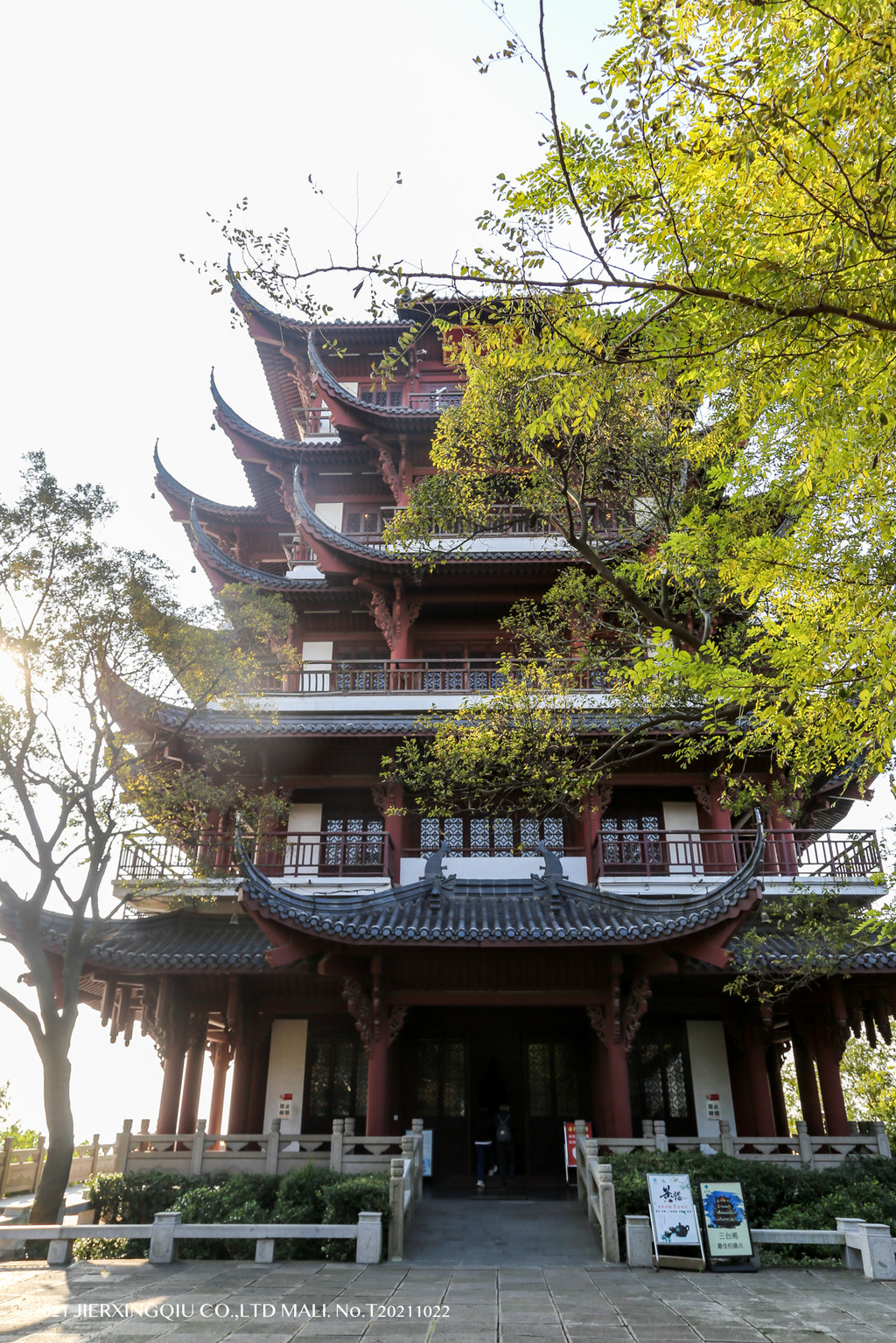 采石矶的最高处,没有尖尖的主峰,反倒是一个约3000平方米的平台。在平台上,是一座巍峨的宝塔,就是三台阁。