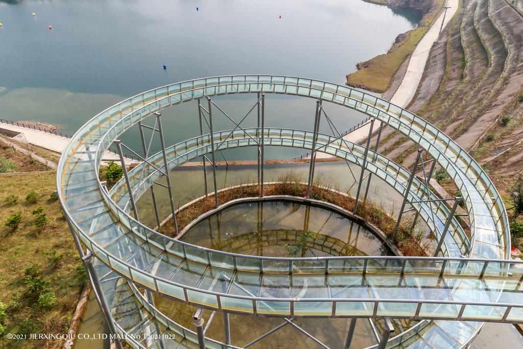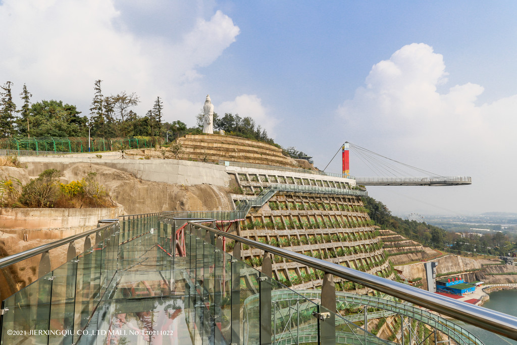 瑶池矿坑运动项目体验区,是原国安矿业的一处废弃矿坑,占地面积120亩,通过加固稳定山体修坡治理改造成旅游景点。