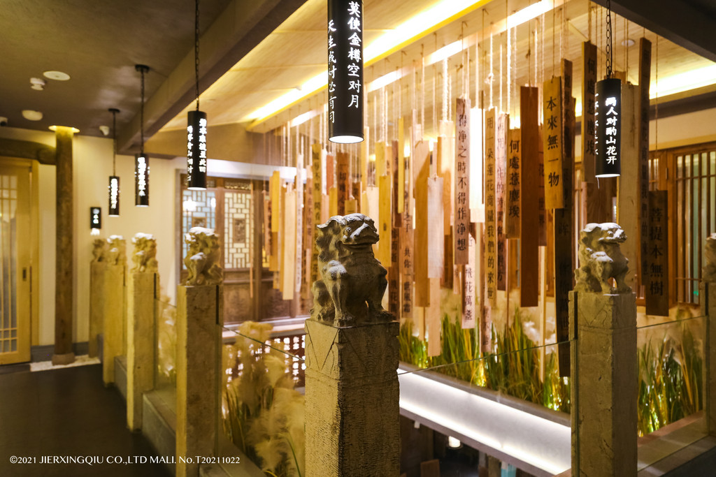 暖黄色柔美的灯光,书卷般雅致的吊顶,悠悠古韵,让人一度疑惑这到底是一处烟火餐厅,还是那个儒风古韵的名士雅居?