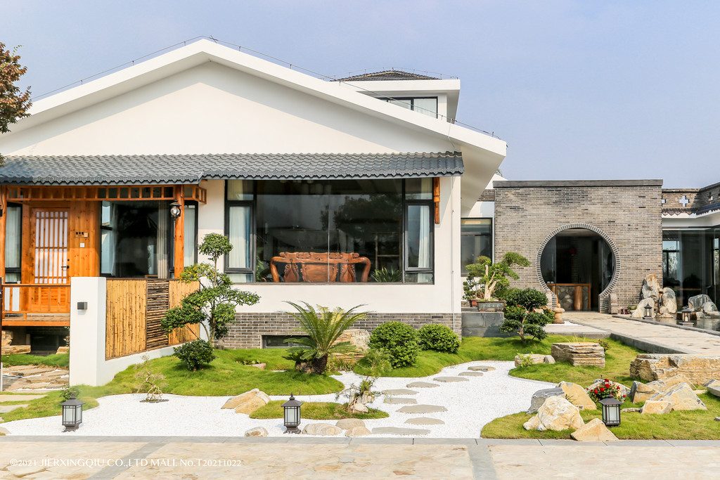 民宿小院自然开阔,有精致的山水造景。门口的礼宾会亲切的打招呼,给人宾至如归的感觉。