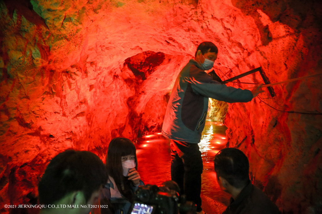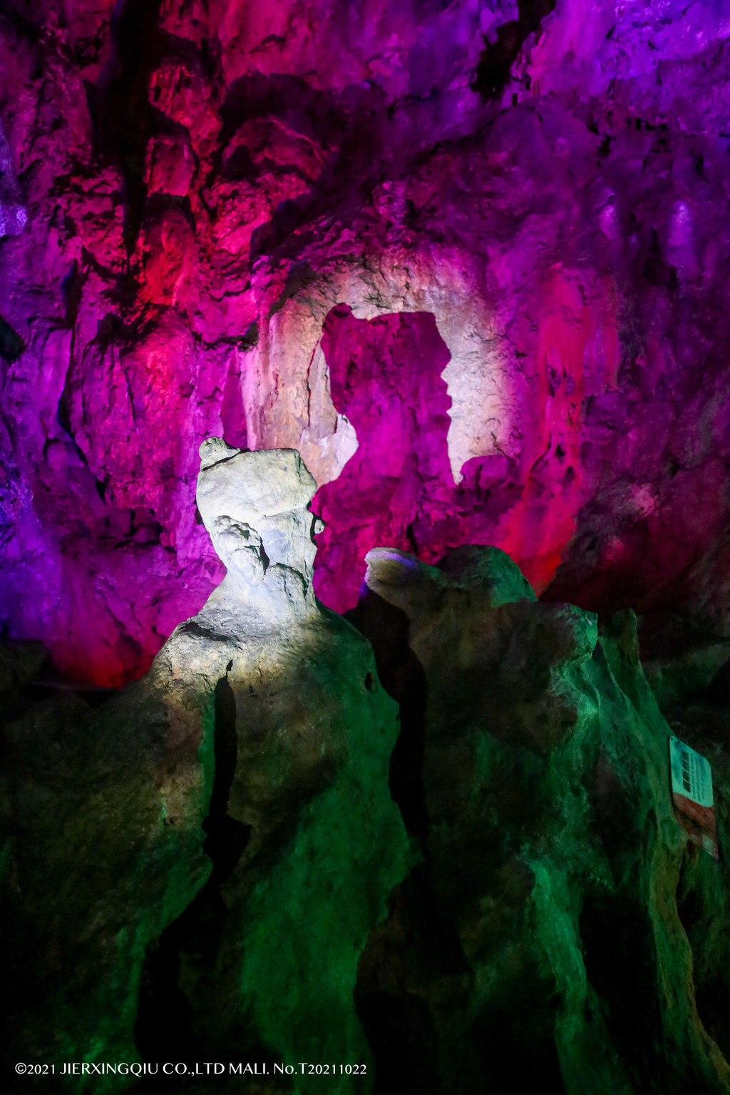 洞府体量庞大,气势磅礴,有宽敞的大厅、曲折的廊道,险峻的峡谷,幽深的地下河,还有五彩缤纷的钟乳石,景观秀丽。