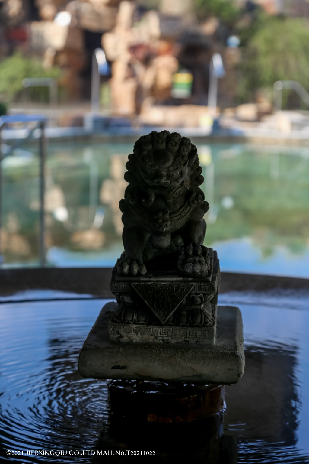李白文化园入口处是一座四柱三门式青石牌坊,上书”诗仙圣境“四个大字,遒劲有力,牌坊前一对石狮,形态栩栩如生。