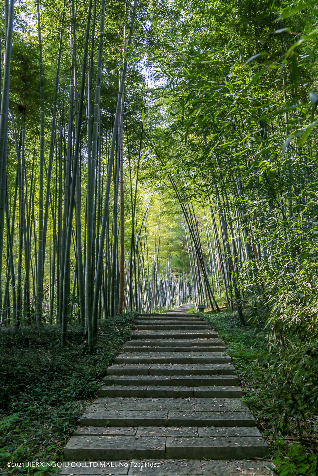 这的小路是用石头建造的,光滑又有质感,偶有落叶,踩上去会有吱嘎吱嘎的声响,伴着这声音一步一个台阶的走,抬头便是连绵的竹林,感觉非常好。