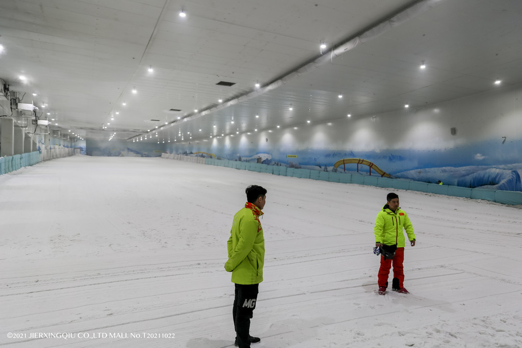 图:在启迪乔波滑雪馆,体验室内滑雪的快落。