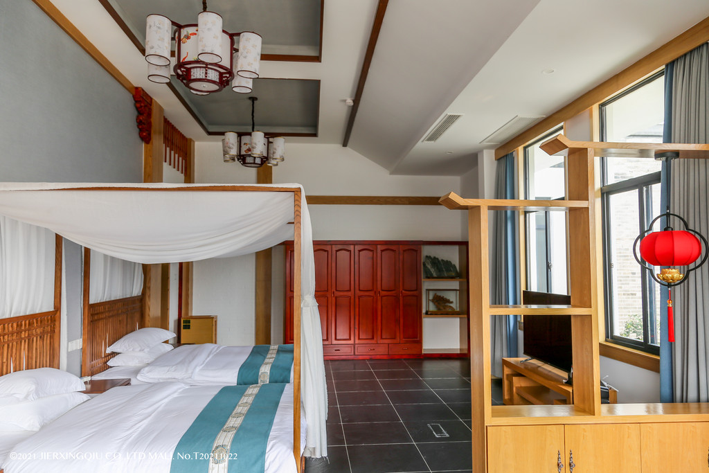 客房设计延续庭院的一贯风格,以中式为主调,客房优雅舒适,既有适合商务人士的大床房,又有适合家庭度假的亲子房还有日式榻榻米等。