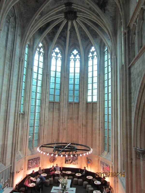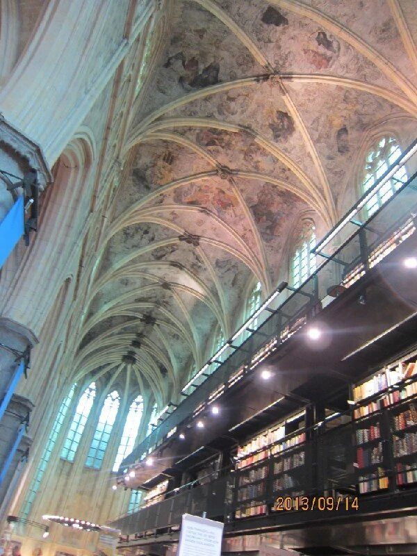 小心翼翼下了高塔,直接向东走,可以看到一栋黄色的教堂,那就是美丽的天堂书店,这是一座由800年教堂改建而成的书店,被称为世界上最美的书店。