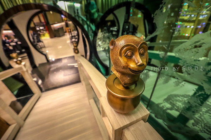餐厅装饰非常有中国风,桥上的柱子都是用十二生肖来做装饰,比较特别。