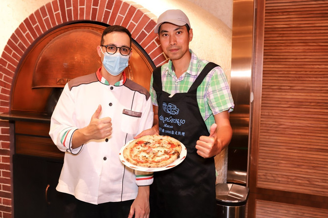 下午在当奥丰素1890意式料理餐厅,跟着薄饼厨师 Maurizio Ferrini,现场制作意大利本土美食,正宗拿坡里薄饼。