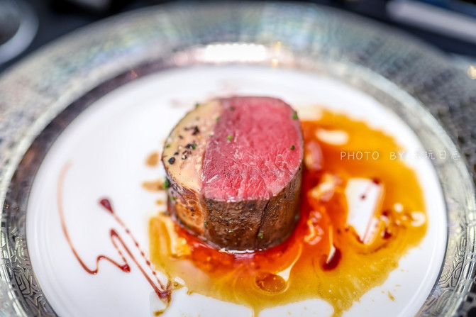 天巢法国餐厅,有两道法式佳肴是必尝的,分别是“鱼子酱帝王蟹塔伴海鲜冻”和“香烤牛柳及鸭肝配砵酒汁”。