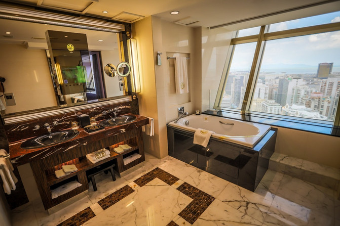房间的面积都比较大。我房间能饱览澳门半岛的填海区和港珠澳大桥,景观OK。