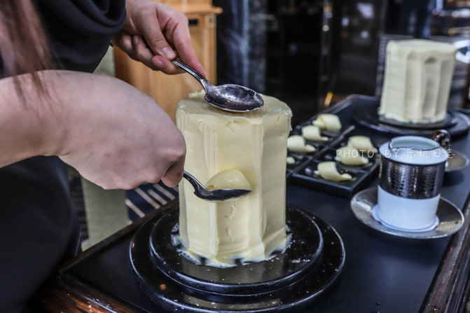 之后,再现场为你制作沾面包的牛油,有二小碟,一份为咸味,一份为无味。