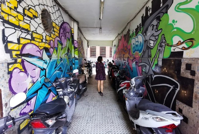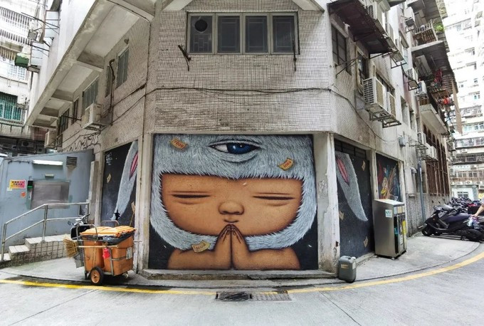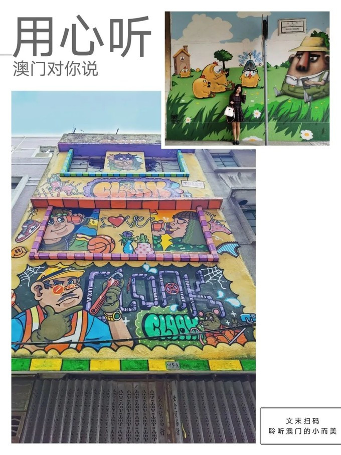 🇲🇴澳门半岛的柯邦迪前地(俗称:司打口)是澳门的老城区,就在内港客运码头旁,楼房历史久远,生活气息浓厚。但这样一块老地,却处处藏着令人惊艳的涂鸦艺术作品,趣味无穷!📌聚宝街、马车街、安仿西街、英京酒店、澳门艺舍酒店侧,布满了大大小小的非凡之作,包括泰国著名涂鸦艺术家的穿兔子头饰的三眼小女孩玛迪、韩国涂鸦艺术家的娴静少女、台湾涂鸦艺术家的微笑少女等,而葡萄牙知名艺术家擅于破坏美学,利用原建筑墙上的裂缝、泥坑创作出的人像雕刻作品也非常震撼。🎀艺术家通过涂鸦作品表达了强烈的个人创作意图,而这些作品也与旧城区的历史气息相融合,与当地人的生活场景共存,更加让人印象深刻。「恋爱七号旅馆」地标景点网红旅馆