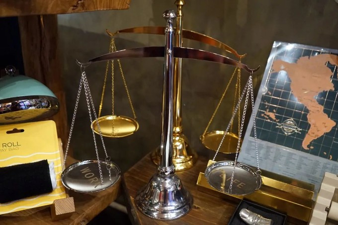 🆚分别标记生活和工作单词的天平其实是套烟灰缸,在抽烟者吞云吐雾弹下烟灰时,也就悟出平衡工作与生活的意义和该如何行动了。