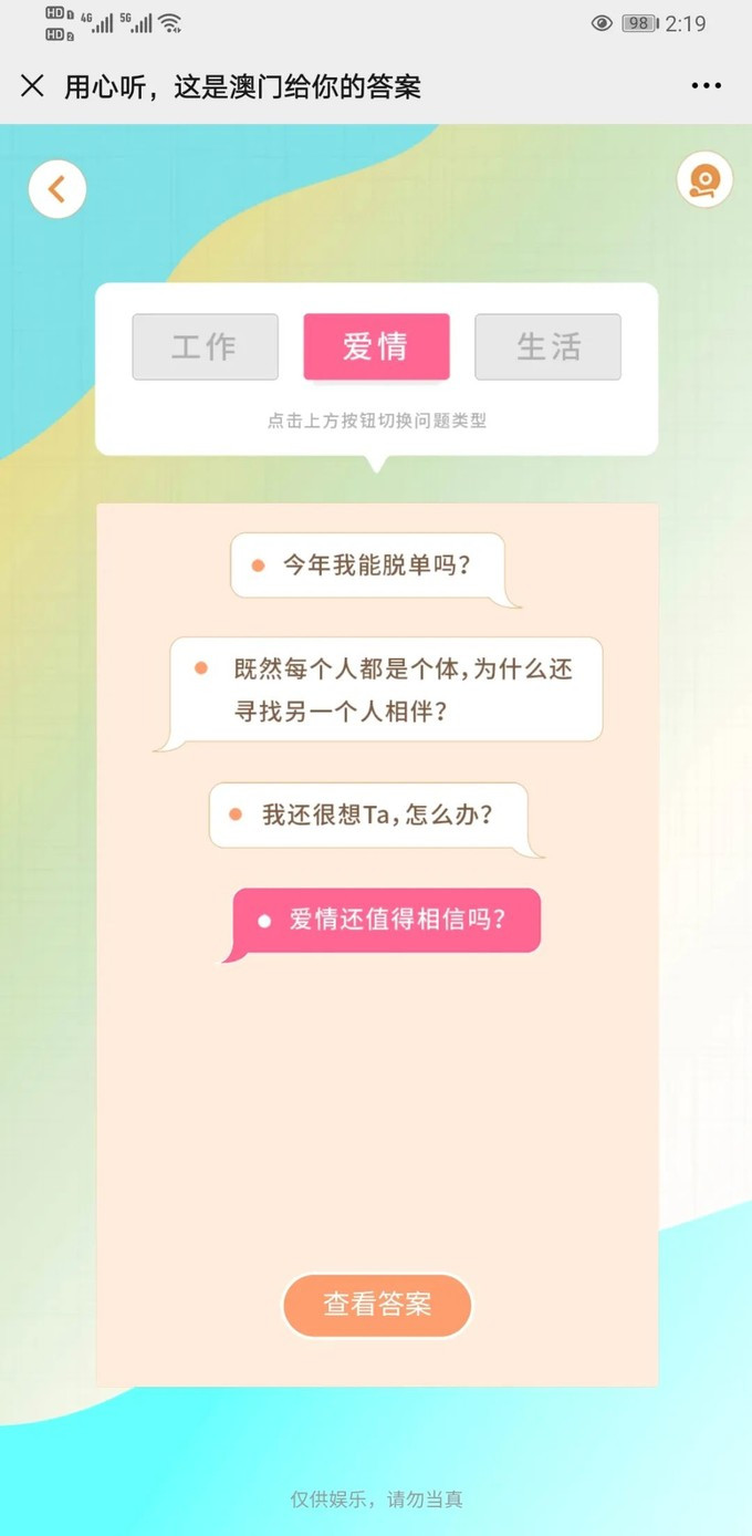 工作、爱情与生活中你遇到了什么烦忧呢?投递至澳门说不定有答案哦。