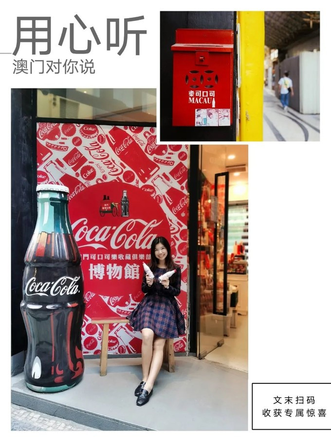 「关前正街」澳门新兴文创街区🗺关前正街的历史可以追溯到康熙年间,海关衙署“关部行台”就设在此街附近,所以得名“关前”。近年,政府在街道新铺设了波浪形的传统葡萄牙式石子路,🖼街区内也随处可见艺术涂鸦墙,连小小的电箱子都设计了各不相同的装饰涂画,缤纷又有趣,葡国街主题墙上的葡国鸡又是一个必打卡点呢!☕️街内一座现名为“文艺门”的楼房原为有60年历史的白铁工厂“荣记”,2017年由澳门本土艺术家改造为新的文创天地,四层高的楼房分别开设咖啡店、文创杂货店、本土设计品牌工作室等,四楼的天台上保留了昔日“荣记”白铁工厂招牌,文艺青年快记下这个怀旧打卡点哦!「可口可乐收藏博物馆」主题博物馆🗺关前正街上的澳门可口可乐收藏博物馆,是港澳地区唯一一个可口可乐主题博物馆。博物馆虽小,但也是经过可口可乐总公司认证而开设的哦。