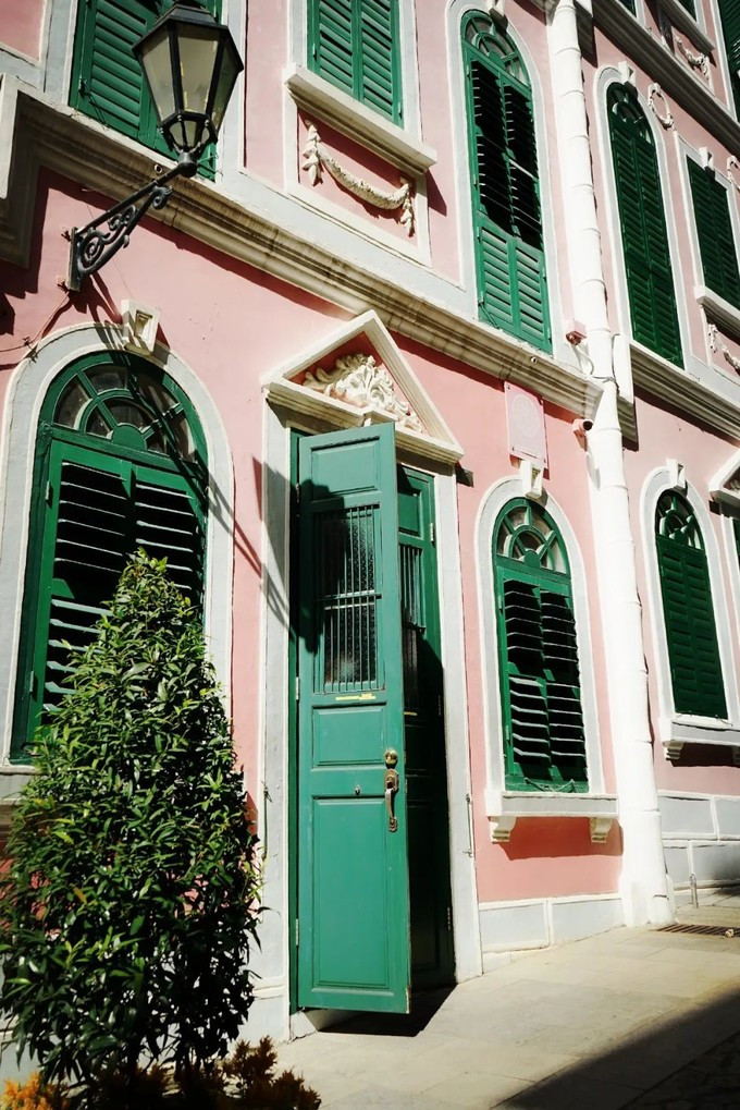 🧡 巷子全长仅50米,至今已有80年历史,欧式石春小路、欧式街灯、明艳的欧陆式五彩外墙、花基上繁花鲜艳,让这里成为了情侣拍拖钟爱之地,也吸引了不少电视剧和电影到此取景。💚 在巷子正中那座粉红、草绿、白色三色搭配的欧式风情建筑,现已改造为恋爱七号旅馆,在晴朗的秋日,花花住进了这个欧式童话小馆中。💜 旅馆尽可能保留原建筑的葡式传统旧貌,此外,店家精心挑选了具古典中式元素的家具和饰品,中西结合酝酿出另一番雅致情调。