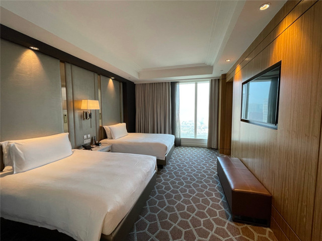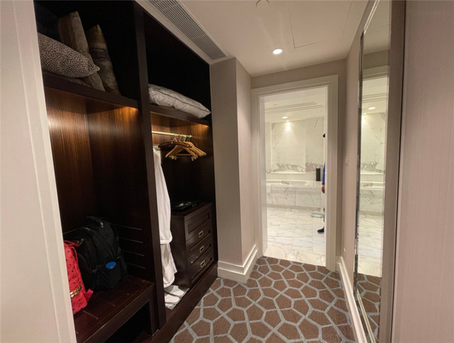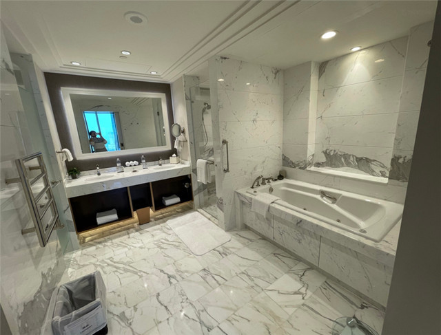 进入大堂后,本来就迷糊的我更加晕头转向了。酒店太大了,我们走在里面就跟参观宫殿一样,差点忘了正事。我们check in的时候,正好是下午三点,核实好身份以后就能直接入住了。酒店的工作人员还贴心地告诉我们延迟退房的具体时间,服务态度让人感觉十分温暖。
