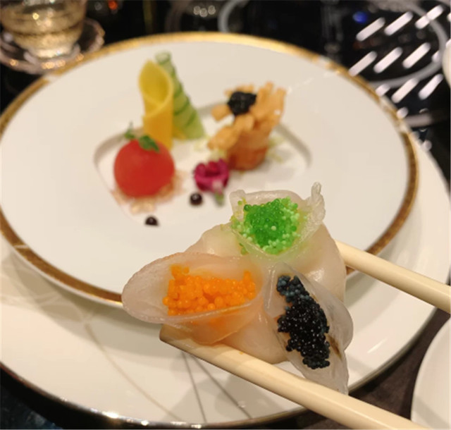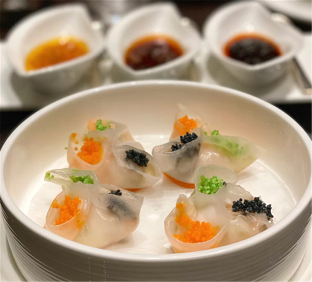 鱼子酱三色虾饺饺和黑鱼籽金丝凤尾虾都是非常精致的粤式点心,量不多,能吃完,不用担心浪费!