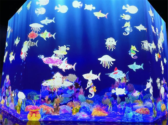 翻转世界之涂鸦自然以及光之雕刻——平面这两个主题房间真让人流连忘返,涂鸦的东西可以被投射到墙上变成动态的,互动感和科技感十足。