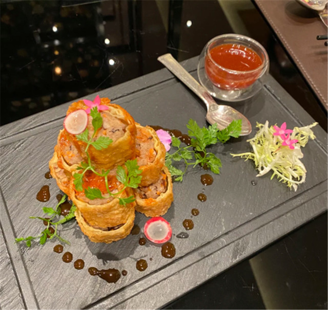 脆皮五香素芋丝卷,这是一道素材,却做出了肉食的味道,不得不佩服厨师的手艺呀。