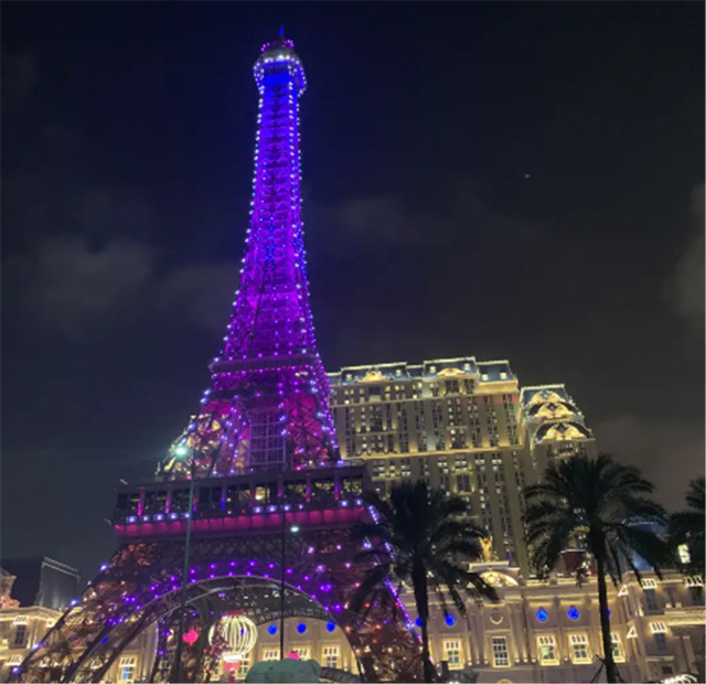 酒店里面太大了,真的能逛上一天不感到无聊的,但是到了晚上不要忘记出来看看这金光大道的百变霓虹哦。就在巴黎人酒店附近散散步,看看铁塔的灯光秀,白天的疲倦能被消解一半!